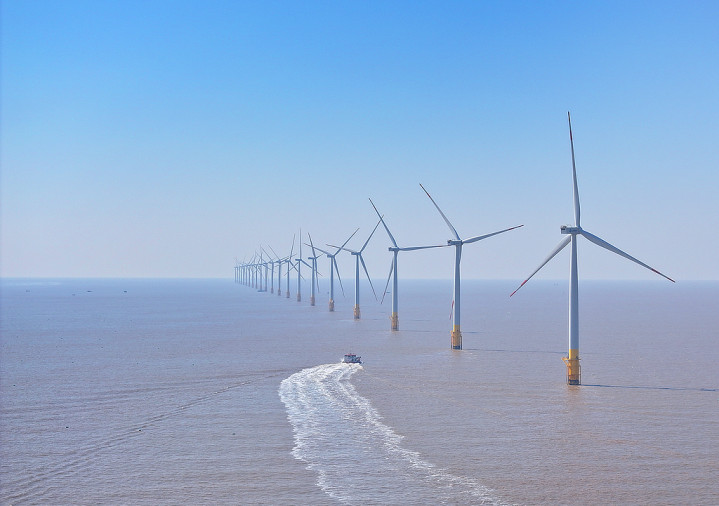 2025年2月9日,在国电投南通新能源有限公司海上风电场,生产运维部员工对风机和海上升压站进行日常运行维护,保障现场发电设备安全稳定运行。视觉中国 资料图